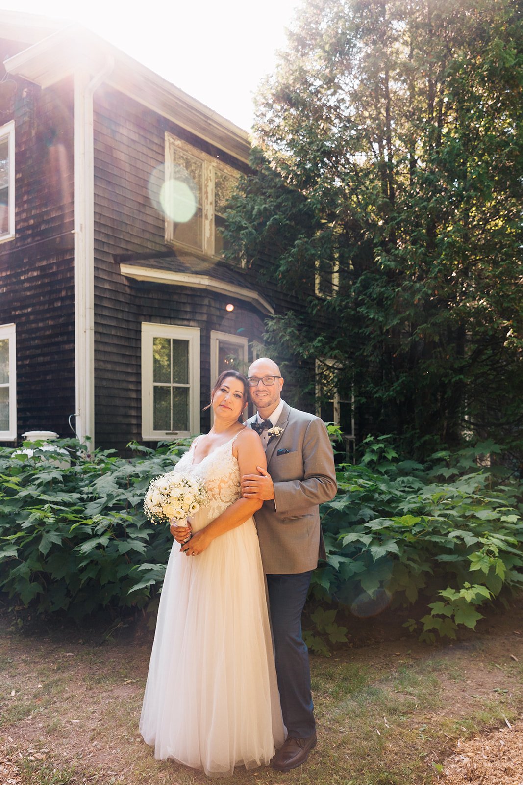 This intense sunset was at Jack Layton Park in Hudson, Quebec. Nearing the end of our session, the couple sat to feel the warmth on their faces and take a break from the walkabout we had done around the park. The backlight caught those tiny little bugs which gives the scene a natural and summery feel.