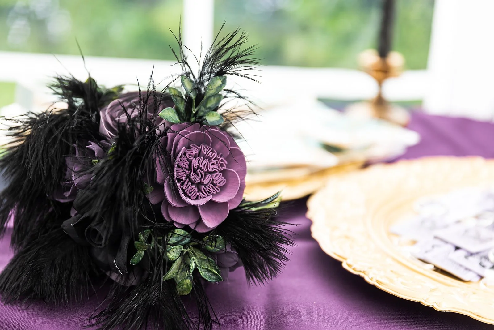 This was an alternative backyard wedding where the bride wore a black wedding gown which makes this bouquet a propos. The groom’s boutonniere was a variation on the same theme.